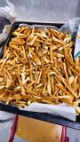 Steack, frites, ketchup, saucisson et bacon.